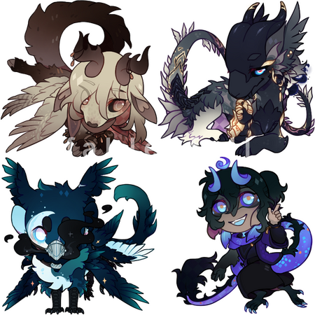 Below is a list of all the different types of art I offer. Additional charges may be applied depending on the provided character's complexity (intricate markings, wings depending on the piece, complex anatomy, etc). Adding another character is also possible in some categories for a fee.If you are interested in something not seen here, you're more than welcome to send me a message and ask about it!